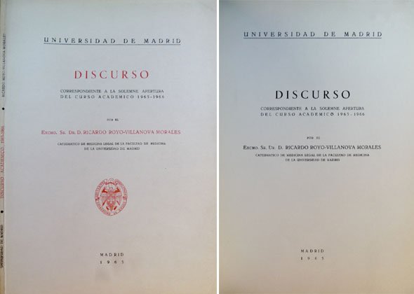 Médicos y Juristas. Discurso correspondiente a la apertura del Curso Académico 1965-1966, en la Universidad de Madrid.