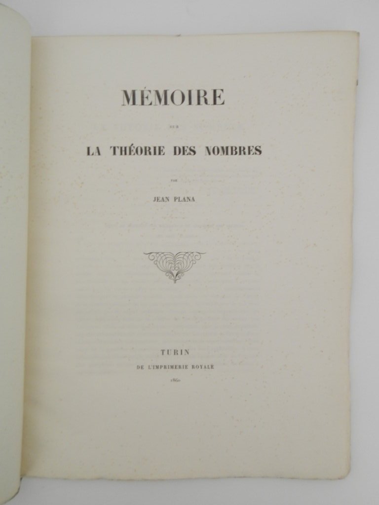 4°, pp. 38, brossura cartacea verde, esemplare in barbe a carte intonse, bella copia offerta dalla figlia dell'autore, Sophie Plana, a Giuseppe Bartolomeo Erba. Estratto da: Memorie della R. Accademia delle Scienze, serie 2., t. 20. 2 copie in ICCU. *** TUTTI I NOSTRI LIBRI SONO VISIBILI PREVIO CONTATTO MAIL O TELEFONO NELLA NUOVA SEDE DI MILANO: LIBRERIA COSMOPOLIS, VIA JOMMELLI, 22. ***