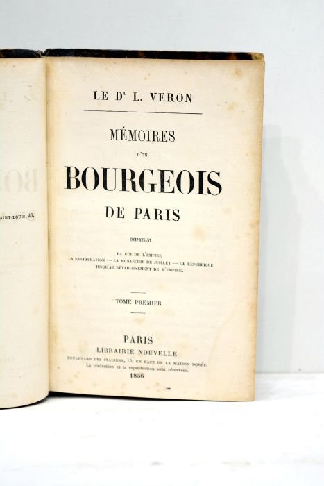 Mémoires d'un bourgeois de Paris comprenant la fin de l'Empire, la Restauration, la Monarchie de juillet, la République jusqu'au rétablissement de l'Empire. Tome premier.