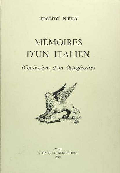 Librairie C. Klincksieck, Paris, 1968. Grand in-8 (24 x 15 cm) broché, planches en noir de C. Verlinde, 655 pages. Ippolito Nievo (1831-1861) passe ses premières années en Vénétie et dans le Frioul, dans le château de Colloredo di Montalbano, près d’Udine, qui deviendra le château de Fratta des Confessions d'un italien. Dès 1848, il milite en faveur du Risorgimento et poursuit des études de droit à Pavie. Il publie son premier roman, en 1856, et commence, en 1857, la rédaction de son chef-d’œuvre, les "Confessioni d'un Italiano", paru à titre posthume en 1867. Lors de la seconde guerre d’indépendance italienne, il s’engage dans les volontaires garibaldiens et meurt en mission officielle, lors du naufrage de l'Ercole dans la nuit du 4 au 5 mars 1861. Il est considéré, avec Manzoni et Verga, comme l'un des trois romanciers majeurs de la littérature italienne du XIXe siècle.