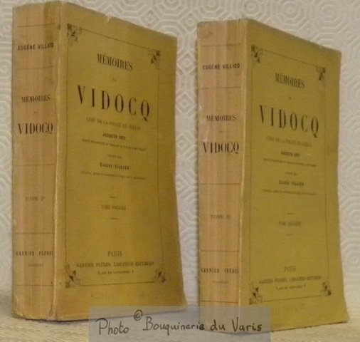 Mémoires de Vidocq. Chef de la police de sureté jusqu’en 1827, ensuite propriétaire et fabricant de papier à Saint-André. Annotés par Eugène Villiod. Tome premier et tome second.