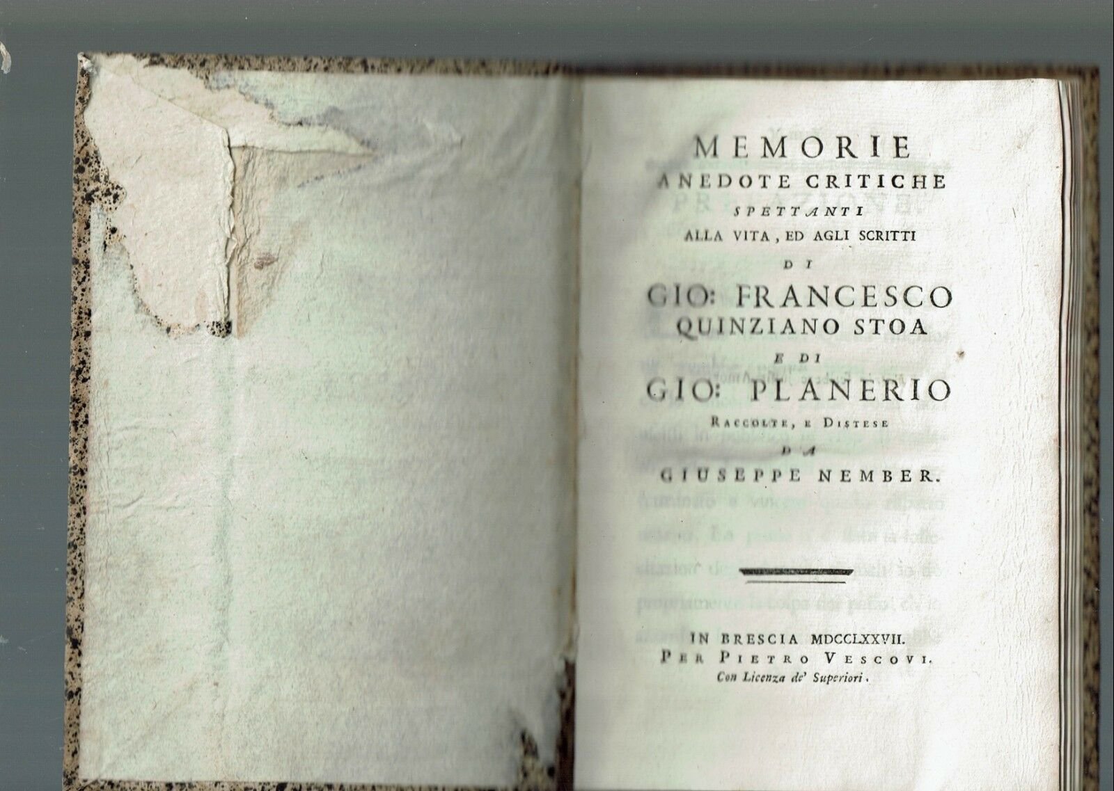 Memorie anedote critiche spettanti alla vita, ed agli scritti di Gio. Francesco Quinziano Stoa e di Gio: Planerio raccolte e distese da Giuseppe Nember