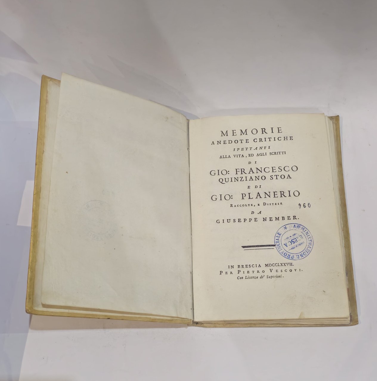 Memorie anedote critiche spettanti alla vita, ed agli scritti di Gio. Francesco Quinziano Stoa e di Gio: Planerio | Libri antichi e moderni | FRANCESCO QUINZIANO, ,FRANCESCO QUINZIANO