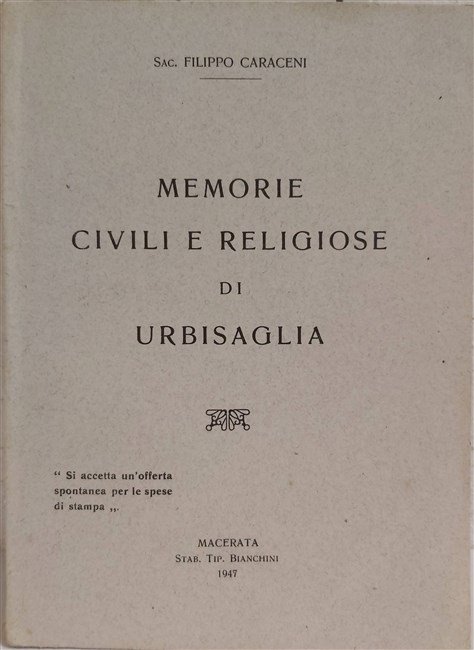 in-8, pp. 126, bross. edit. Interess. pagine storiche sulla cittadina di origini romane di Urbs-Salvia nel Piceno. [334]