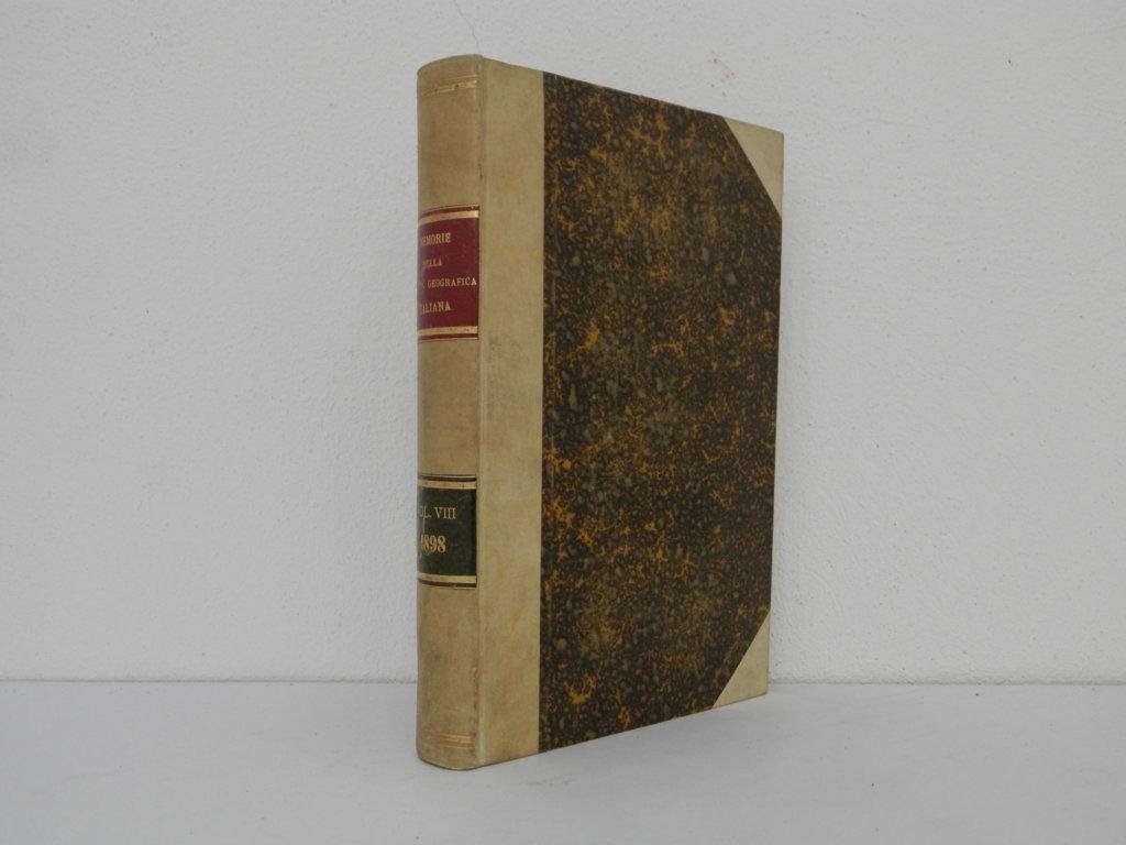 22 cm, pp. 448, 3 tavole ripiegate fuori testo, alcune figure nel testo. Rilegatura coeva in mezza pergamena con angoli, titolo in oro su tassello al dorso, piatti marmorizzati. Tra i contributi: della morfologia della superficie terrestre nellla geografia e dei tipi di rilievo colla loro nomenclatura in italiano di Filippo Porena; Discussione delle osservazioni astronomiche fatte dal tenente di vascello Lamberto Vannutelli, addetto alla seconda spedizione Bottego in Africa di Elia Millosevich; Sui ghiacciai del Bernina proprio, prime osservazioni nel 1897 di Luigi Marson; Guaicurù. Sul nome, posizione geografica e rapporti etnici e linguistici di alcune tribù antiche e moderne dell'America meridionale di Guido Boggiani. Esemplare ottimo. *** TUTTI I NOSTRI LIBRI SONO VISIBILI PREVIO CONTATTO MAIL O TELEFONO NELLA NUOVA SEDE DI MILANO: LIBRERIA COSMOPOLIS, VIA JOMMELLI, 22. ***