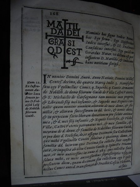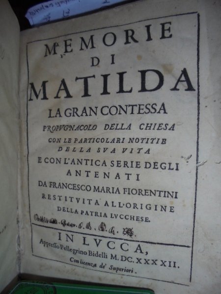 Memorie di Matilda la gran Contessa, propugnacolo della Chiesa, con le particolari notizie della sua vita e con l' antica serie degli antenati, da F.M.F. restituita all' origine della Patria Lucchese.