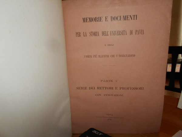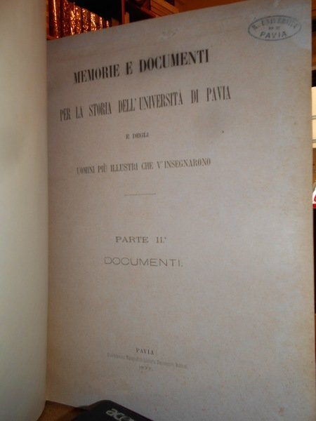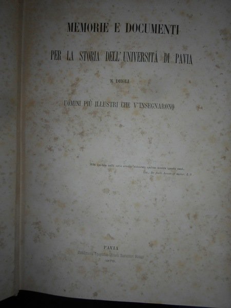 MEMORIE E DOCUMENTI per la Storia dell' Università di Pavia e degli uomini che v' insegnarono