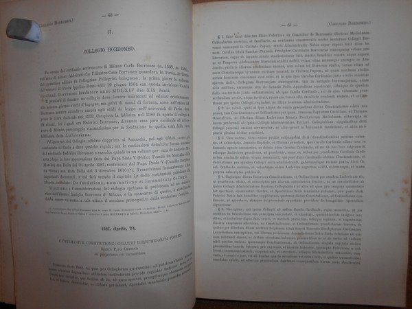 così suddivisi: Parte I Rettori e professori, Parte II Documenti, Parte III Epistolario. Con tabb. n.t. Fondamentale e corposa fonte storica e bibliografiche. Uff. A - I - 7