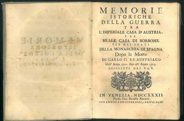 Memorie istoriche della guerra tra l'imperiale casa d'Austria e la reale casa di Borbone per gli stati della monarchia di Spagna. Dopo la morte di Carlo II re austriaco. Dall'anno 1701 fino all'anno 1713.