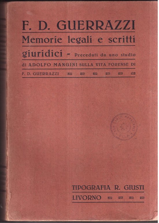Memorie legali e scritti giuridici preceduti da uno studio di Adolfo Mangini sulla vita forense di F. D. Guerrazzi