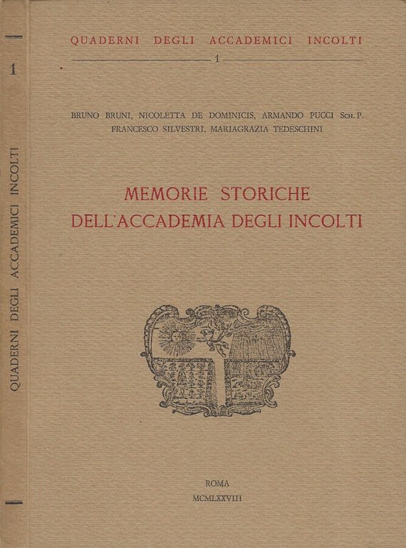 Memorie storiche dell'Accademia degli Incolti | Libri antichi e moderni | Bruno Bruni, Nicoletta De Dominicis, Armando Pucci, Francesco Si, Lvestri, Mariagrazia Tedeschini