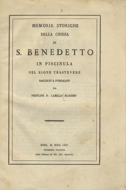 Memorie storiche della Chiesa di S. Benedetto in Piscinula nel rione Trastevere [.].