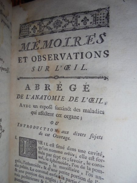 Mémories et observations anatomiques, physiologiques et physiques sur l' oeil, et sur les maladies qui affectent cet organe; avec un précis des opérations et des remedes qu' on doit pratiquer pour les guérir.