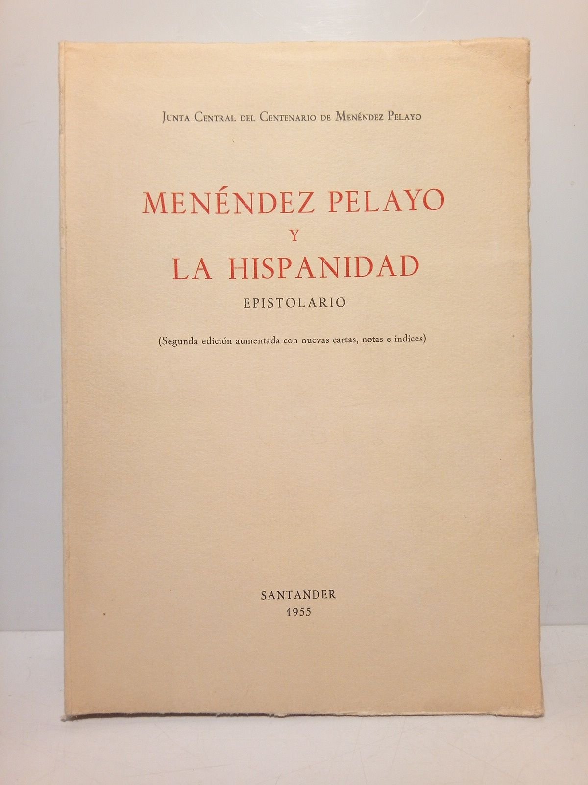 2ª Edición aumentada con nuevas cartas, notas e índices.- Santander: [Edita] Junta Central del Centenario de Menéndez Pelayo, 1955.- X,409 p., [1 h.]; 4º (23,7 x 16,6 cm); Cartulina Ed.- La obra contiene gran cantidad de correspondencia de Menéndez Pelayo con muchos autores hispanoamericanos, clasificados por países.- (Junta Central del Centenario de Menéndez Pelayo).* Excelente estado. HISPANIDAD