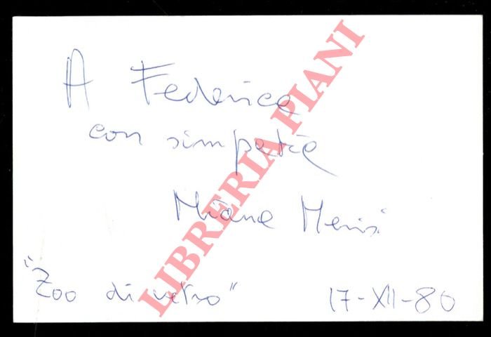 Cartoncino, (Zoo di vetro, 1980), con dedica e firma autografa.