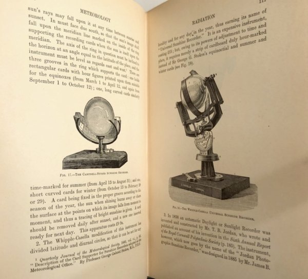 Soggetti: Meteorologia applicata, Scienze dell'atmosfera, Leggi fisiche, Teorie, Clima, Climatologia, Misurazioni, Tempo, Previsioni, Manuali, Trattati, Collezionismo, Studi, Previsioni meteorologiche, Fenomeni atmosferici, Osservazione, Elaborazione, Strumenti, Geografia, Stazione meteorologica, Radar, Radiometri, Termometro, Igrometro, Pluviometro, Anemometro, Osservatori, Satelliti, Temperatura, Barometro, Umidità, Aria, Fisica, Geo-stazioni, Circolazione atmosferica, Nubi, Anticicloni, Venti, Vento, Gas, Elio, Ozono, Anidride carbonica, Carte sinottiche, Scala di Beaufort, Isobare, Ossigeno, Acqua, Precipitazioni, Pioggia, Neve, Grandine, Storia, Divulgazione scientifica, Scienza, Gradi centigradi, Celsius, Bollitura, Altitudine, Pressione, Fahrenheit, Réaumur, Mercurio, Negretti, Zambra, Zero termico, Radiazioni, Calore, Sole, Canada, Stati Uniti, Gran Bretagna, Galileo Galilei, Evangelista Torricelli, Barometro, Glicerina, Jordan, Robert Hooke, Altitudine, Elettricità, Fluttuazioni, Cicloni, Vapore acqueo, Von Lamont, Greenwich, McPherson, Nuvole, Fineman, Mannucci, Abercromby, Hildebrandsson, Royal Society, Rain-Gauge, Anemometri, Benjamin Franklin, Ballon, Blue Hill Observatory, Stagioni, Influenza, Malattie, Natura, Ambiente, Dublino, Inghilterra, Isole, Tavole, Trinity College, Tifo, Infezioni, Febbre, Esperimenti, Libri Vintage, Libri antichi e rari, Edizioni pregiate, Introvabili, Novecento, Ottocento, Human beings, Effect of climate on, Weather, Climatology, Meteorological services, Climate, United States, Great Britain, Météorologie appliquée, Applied Meteorology, Atmospheric Sciences, Physical Laws, Theories, Measurements, Predictions, Manuals, Treatises, Collectibles, Studies, Meteorological Forecasts, Phenomena, Observation, Instruments, Geography, Meteorological Station, Physics, Atmospheric Circulation, Synopsis maps, Precipitation, History, Scientific disclosure, Science, Radiation, Heat, Sun, Environment, England, Islands, Tables, Old and rare books, Fine editions, Untraceable, Twentieth century