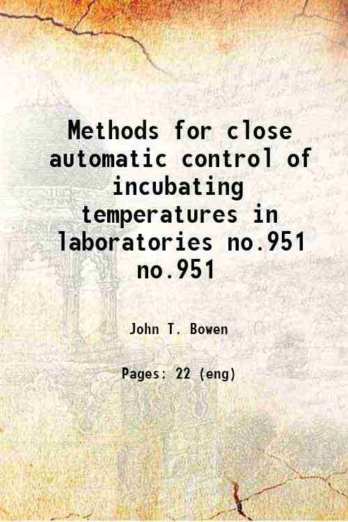 Methods for close automatic control of incubating temperatures in laboratories Volume no.951 1921