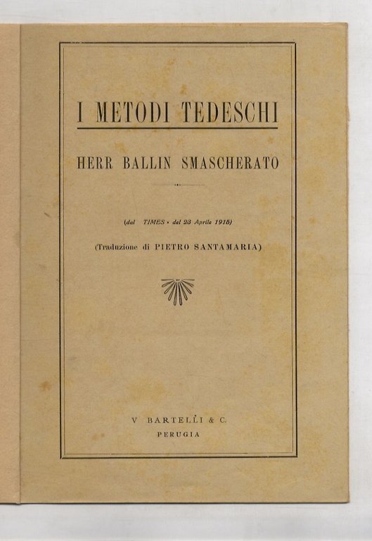 Metodi (I) tedeschi. Herr Ballin smascherato. (Dal Times del 23 aprile 1915). (Traduzione di Pietro Santamaria).