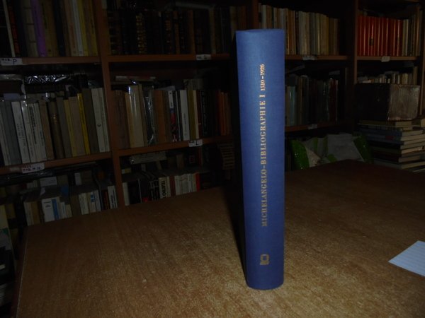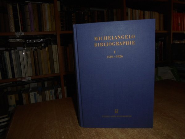 Ernst Steinhoff und Rudolf Wittkower. Published by Georg Olms Verlagbuchhandlung, Hildesheim, 1967. Michelangelo Bibliographie 1510 - 1926. (Vol I). Mit einem Dokumentenanhang bearbeitet von Robert Freyhan. In-8°, tela edit. bleu con titoli in oro al dorso e sul piano anteriore. xxii, 523 pp. con 25 tavole fuori testo. Come nuovo. Uff. B - III - 1