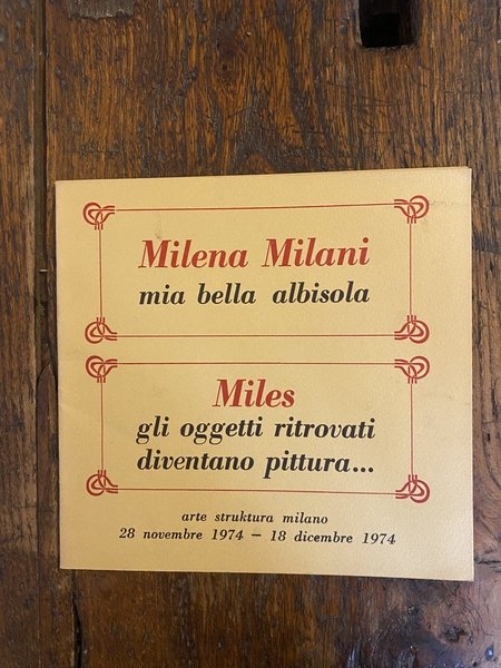 Brochure dell’inaugurazione delle mostre personali di Milena Milani e Miles alla Galleria Arte Struktura Milano giovedì 28 novembre 1974