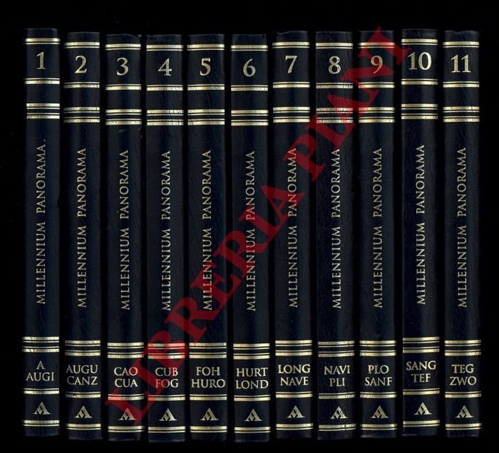 Milano, Mondadori, 2002, undici volumi in-8vo (cm. 21 x 14) legatura editoriale in finta pelle blu con titoli dorati, circa 3000 pagine complessive con numeriosissime illustrazioni a colori nel testo. In ottime condizioni.