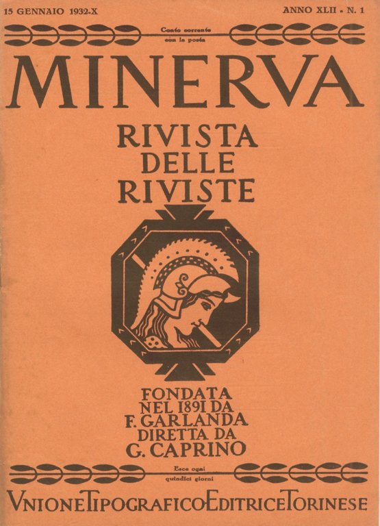 MINERVA. Rivista delle riviste. Fondata nel 1891 da F. Garlanda. Diretta da G. Caprino. Anno XLII. 1932. Di questa annata disponiamo dei seguenti numeri bisettimanali: 1, 2, 3, 13.