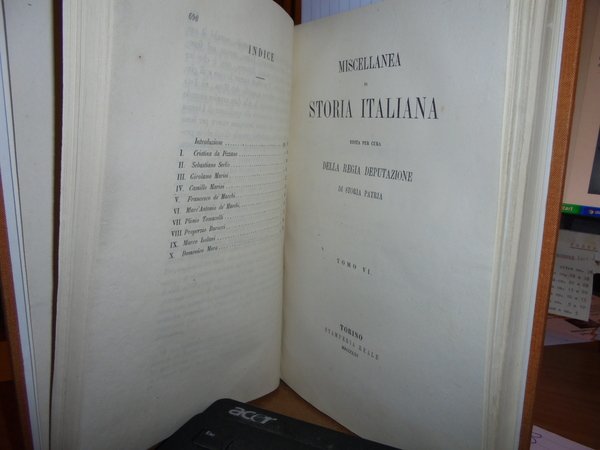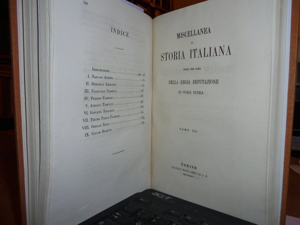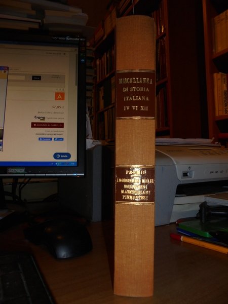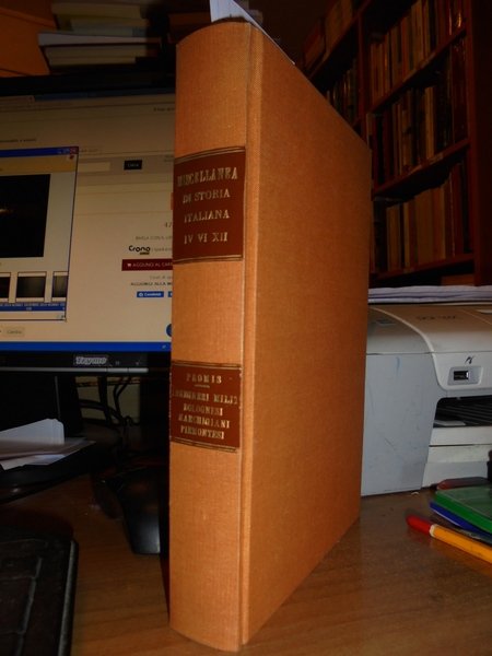 CARLO, PROMIS. Miscellanea di Storia Italiana. Ingegneri Militari Bolognesi Marchigiani Piemontesi. Torino, Stamperia Reale, 1863, 1865, 1871. In-8°, tela con titoli in oro entro tasselli al dorso. 3 tomi legati assieme. Tomo IV: Gl' ingegneri e gli scrittori Militari Bolognesi del XV e XVI secolo, (2), da p. 581 a p. 690. Tomo VI: Gl' ingegneri Militari della Marca d' Ancona che operarono e scrissero dall' anno MDL all' anno MDCL. (2), da p. 243 a p. 356. Tomo XII: Gl' ingegneri Militari che operarono e scrissero in Piemonte dall' anno MCCC all' anno MDCL. (1), dap. 411 a p. 646. Bell' esemplare in legatura recente. Uff. A - I - 3