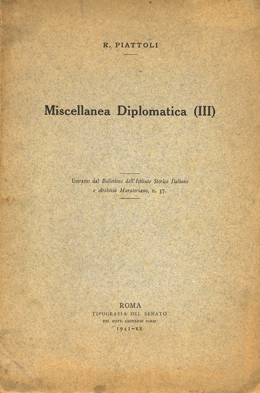 Miscellanea Diplomatica (III). Estratto dal "Bullettino dell'Istituto Storico Italiano e Archivio Muratoriano, n. 57.