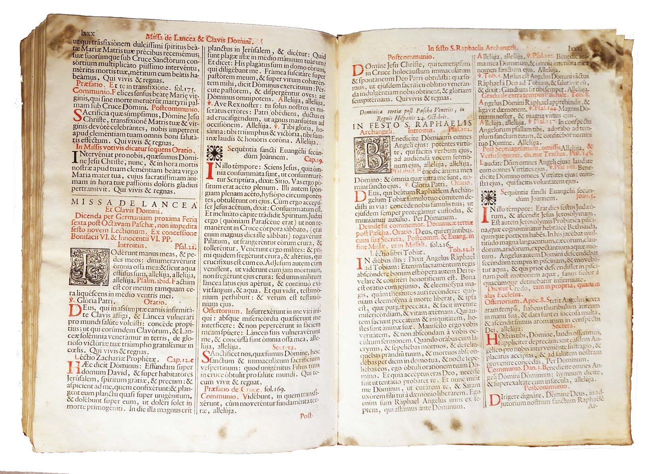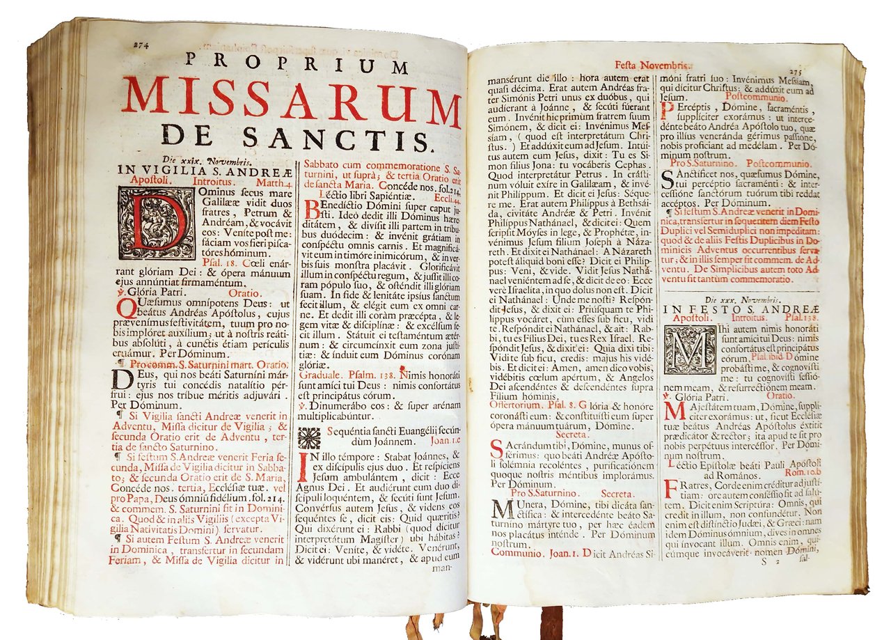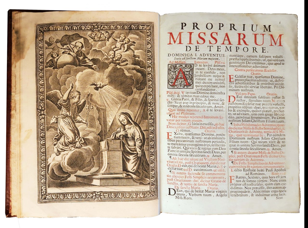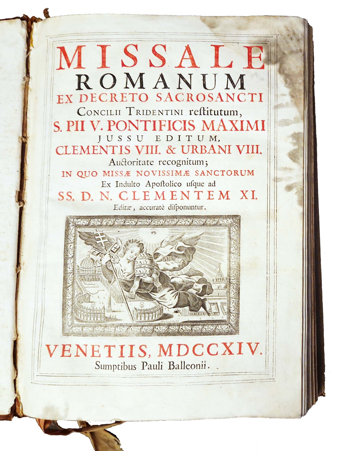Missale romanum ex decreto sacrosancti Concilii Tridentini restitutum, S. Pii V. pontificis maximi jussu editum, Clementis VIII. & Urbani VIII. auctoritate recognitum; in quo Missae novissimae sanctorum ex indulto apostolico usque ad SS. D.N. Clementem XI. editae accurate disponuntur.