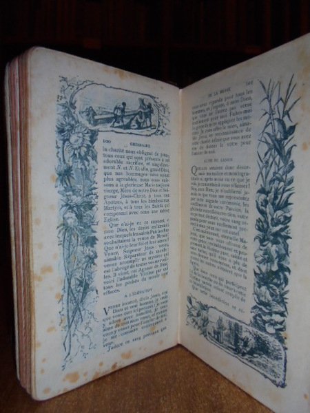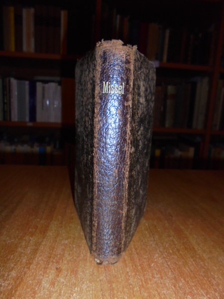 Missel Romain - Braine - Le - Comte, Zech et Fils, 1934. In - 24°, piena pelle con fregi in oro sul piano ant. e titolo al dorso. Bella antiporta incisa, 390 pp. Il testo è contornato da cornice floreale e ad ogni pagina vi è una piccola illustrazione di una scena religiosa. Ben conservato.