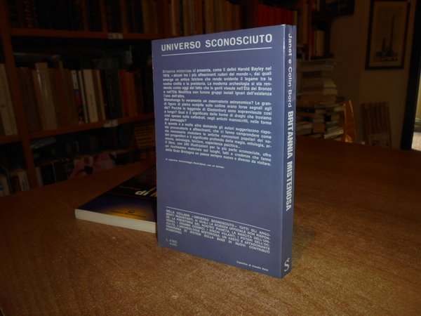 (Misteriosofia) BORD, Janet. Milano, Sugarco, 1975. Britannia misteriosa. Le enigmatiche << pietre azzurre >> della Gran Bretagna, i miti, gli antichi folclori, le leggende racchiuse nelle costruzioni megalitiche della preistoria. In-8°, cartoncino edit. ill. 293 pp. con numerose illustrazioni anche a piena pagina. Come nuovo. Neg, mob. nero 9
