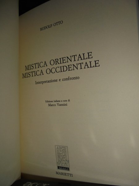 Rudolf, Otto. Casale Monferrato, Marietti Editore, 1985. Mistica Orientale, Mistica Occidentale. In-8°, cartoncino edit. con alette. IX, 216 pp. Come nuovo. Neg. mob. bianco