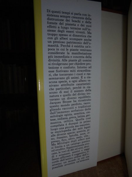 Jacques, Brosse. Milano, Rizzoli Editore, 1991. Mitologia degli alberi. Traduzione di gioia Angiolillo Zannino. In-8°, cartonato edit. con sovracopertina ill. a col. 314, (1) pp. Come nuovo o nuovo. Neg. esot. mob. 60