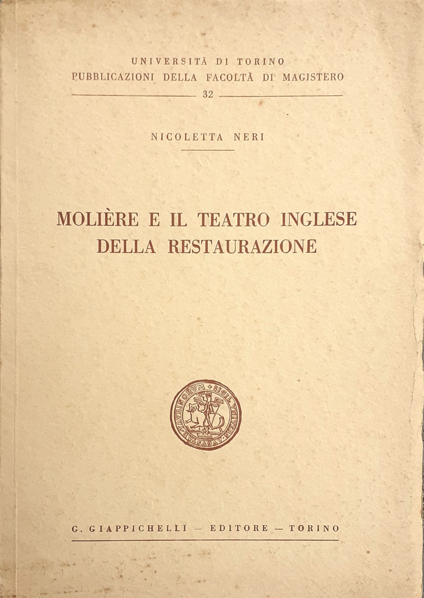 Molière e il teatro inglese della restaurazione Giappichelli Editore Torino 1966