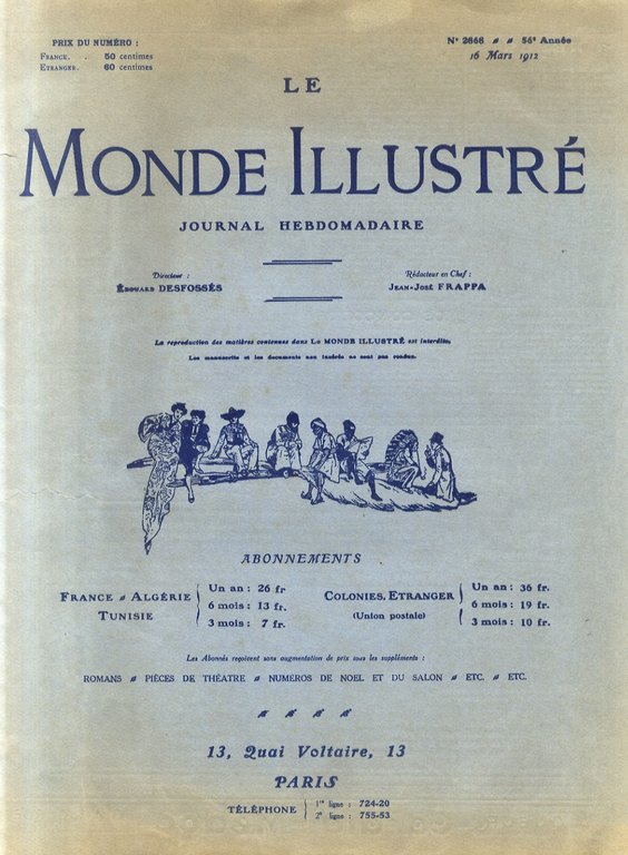 MONDE (LE) Illustré. Journal hebdomaidaire. Directeur: Edouard Desfossés. Redacteur en chef: Jean-José Frappa. N. 2868. 56e année. 16Mars 1912.