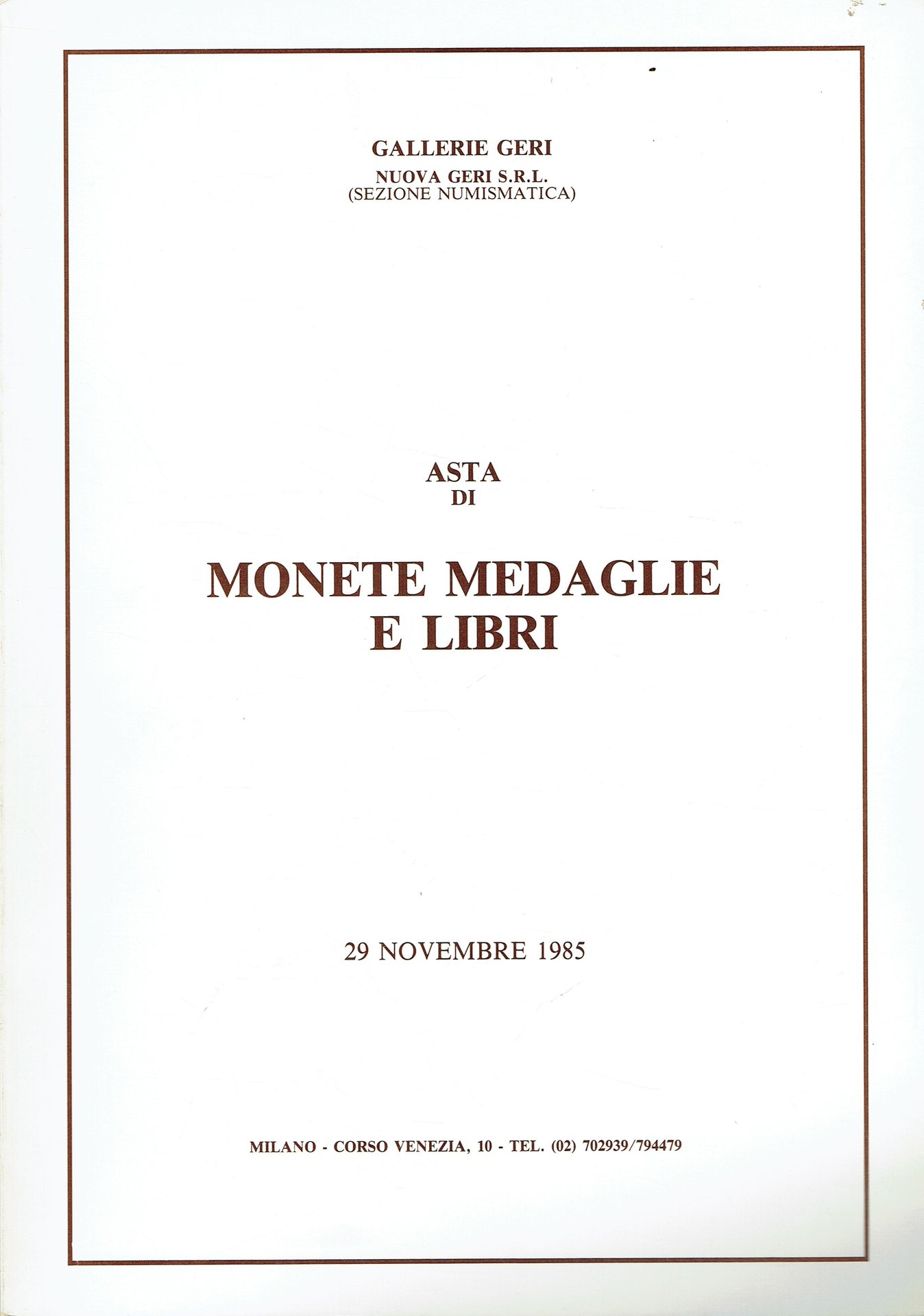 Monete romane, monete e medaglie di zecche italiane ed estere, libri di numismatica : esposizione giovedì 28 novembre 1985,vendita venerdì 29 novembre 1985