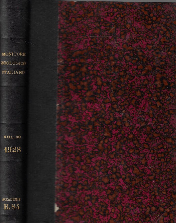 Anno 39° rispettivamente 1928 della pubblicazione italiana di zoologia, anatomia e embriologia "Monitore zoologico italiano" successivamente rilegato in un unico volume. Il volume potrebbe contenere timbri ed etichette dell'Istituto Veneto, regolarmente acquisito dalla nostra libreria. Coperta rigida in mezza tela ingiallita dal tempo presentante segni di usura da scaffale ai margini con abrasioni agli stessi ed al dorso e tracce di usura da sfregamento ai piatti. Pagine fruibili anche se ingiallite dal tempo, in particolare ai tagli sporadicamente fiorite. Segno a matita al frontespizio. Numero pagine 335.