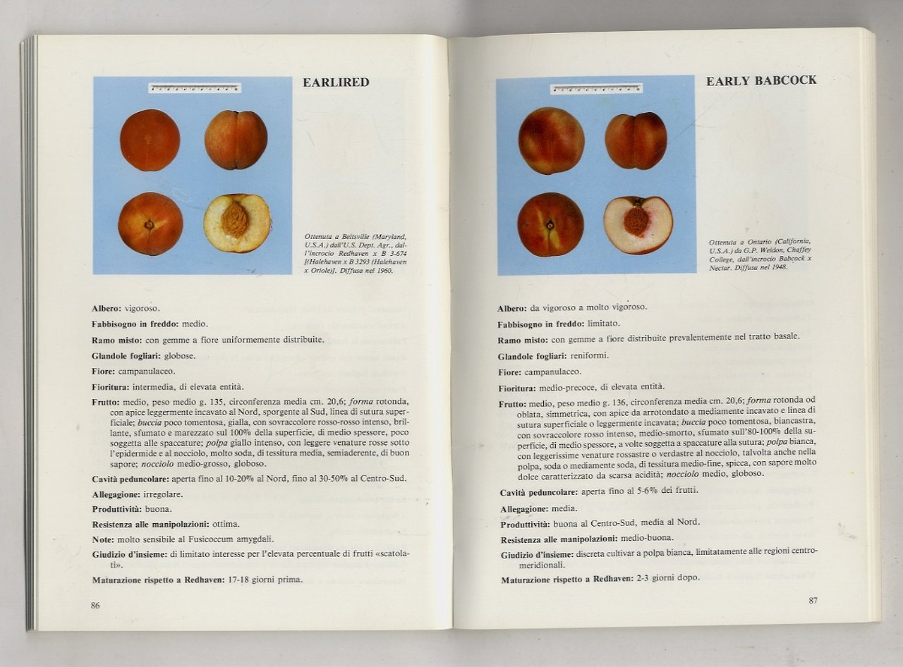 Roma, Ministero dell'Agricoltura e delle Foreste - Istituto Sperimentale per la Frutticoltura, 1984 - 1986, volumi 2, in-8, brossura editoriale, pp. 169, [3] - 171, [3]. Con numerose illustrazioni a colori di tutti i tipi di pesche n.t. Ottime condizioni.