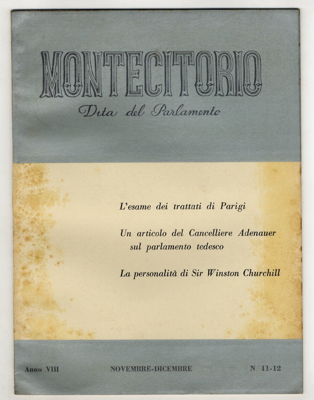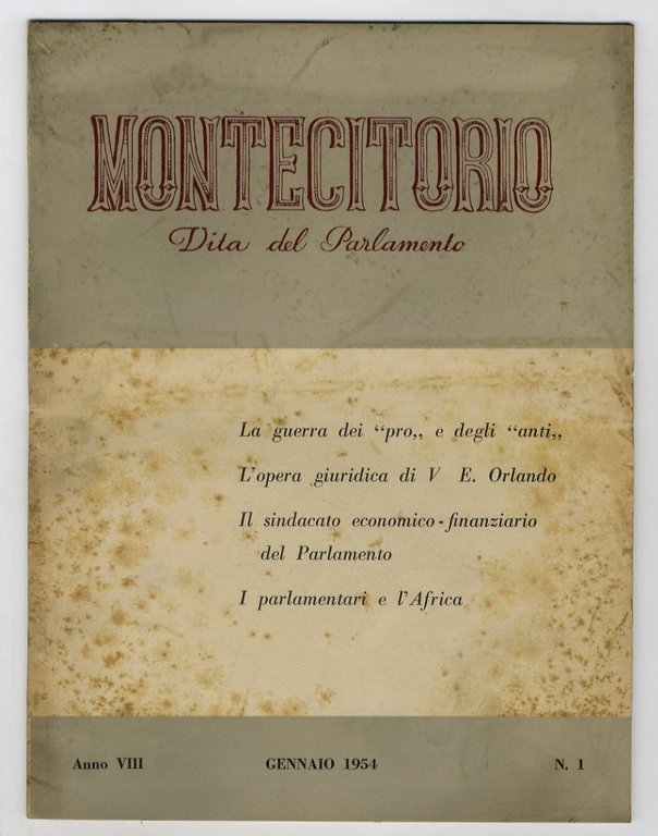 MONTECITORIO. Vita del Parlamento. Rassegna mensile. Anno VIII. 1954. Fascicoli n. 1 (gennaio), 2 (febbraio), 4-5 (aprile-maggio), 6 (giugno), 7 (luglio), 8-9 (agosto-settembre), 10 (ottobre), 11-12 (novembre-dicembre). [Per completare l'annata manca il fascicolo n. 3 di marzo].