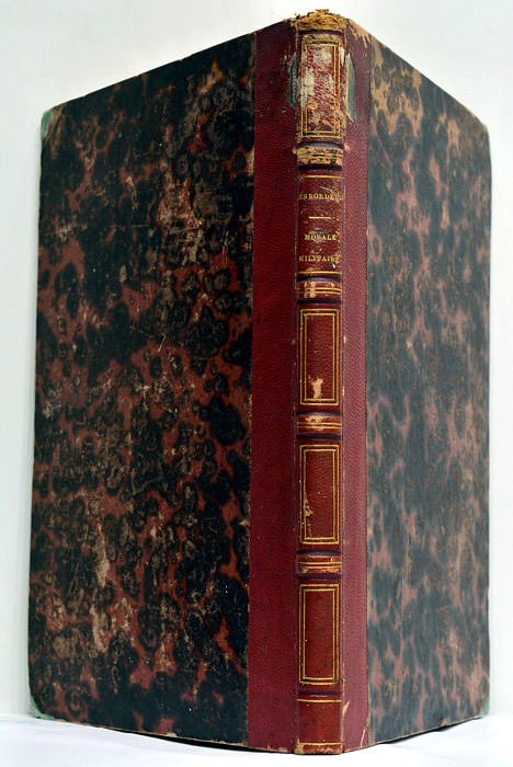 2 feuillets. 163 pages. (23,5x15,5 Cm). Demi-chagrin. Dos orné de caissons dorés. Reliure de l'époque. Couverture imprimée d'origine conservée. Coins et coiffes émoussés. Plats et dos frottés. Fameux manuel de déontologie du soldat, par Albert Guillot-Desbordeliers, Capitaine au 9e Régiment de Chasseurs. L'auteur y rappelle l'ensemble des devoirs qui incombent aux hommes qui font le choix de la carrière des armes. Envoi autographe de l'auteur, daté du 21 février 1845, "à son excellent ami M. de Bois-le-Comte", sans doute André Olivier Ernest Sain de Bois le Comte, militaire et diplomate. Ancien cachet de bibliothèque militaire en page de faux-titre et dernière page. Rousseurs éparses.