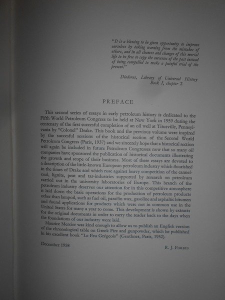 R.J. FORBES. Leiden, E. J. Brill, 1958 - 1959. More Studies in early Petroleum History. Studies in early Petroleum History. 2 volumi in-8° grande, tela edit. e oro. (iv), 199 pp. with 2 tables and 36 figures.; ix, 199 pp. with 16 plates and 32 figures. In ottimo stato di conservazione. Uff. C - III - 5