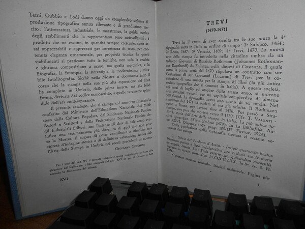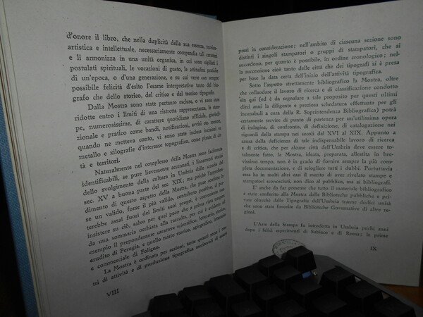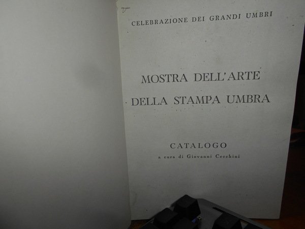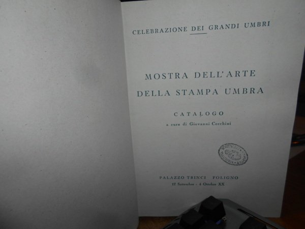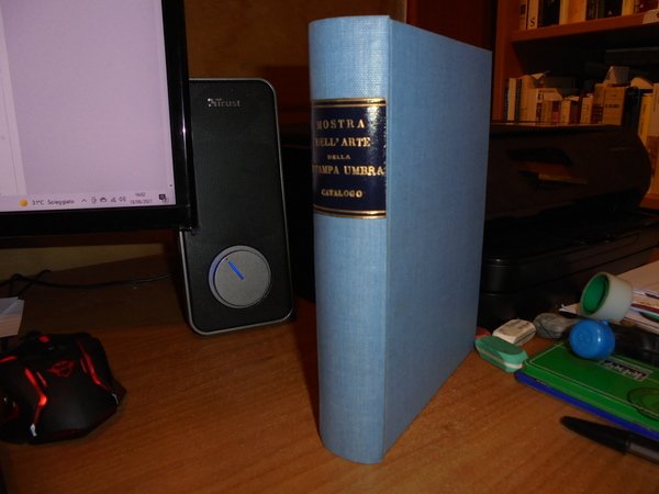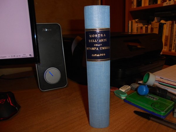 A cura di Giovanni Cecchini. MOSTRA DELL' ARTE DELLA STAMPA UMBRA. CATALOGO. Palazzo Trinci Foligno, 12 Settembre - 4 Ottobre XX. Perugia Presso lo Stabilimento Tipografico Guglielmo Donnini, 1943. In-8°, tela azzurra con titolo in oro entro tassello al dorso, copertine originali conservate. xvi, 217, (3) pp. con in fine 31 tavole fuori testo. Perfetto esemplare in legatura artigianale anni '70 con le copertine originali conservate. Uff. E - V - 4 - 2