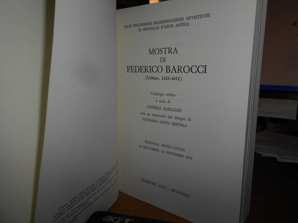 A cura di ANDREA, EMILIANI. Bologna, Edizioni Alfa, 1975. Mostra di FEDERICO BAROCCI (Urbino, 1535-1612). Catalogo critico. con un repertorio dei disegni di Giovanna Gaeta Bertelà. Bologna, Museo Civico, 14 Settembre - 16 Novembre, 1975. In-8°, cartoncino edit. ill. a col. LXXII, 526 pp. con 359 illustrazioni anche a piena pagina stampate su carta patinata nel testo. Come nuovo. Neg. mob. bianco nuovo comput.