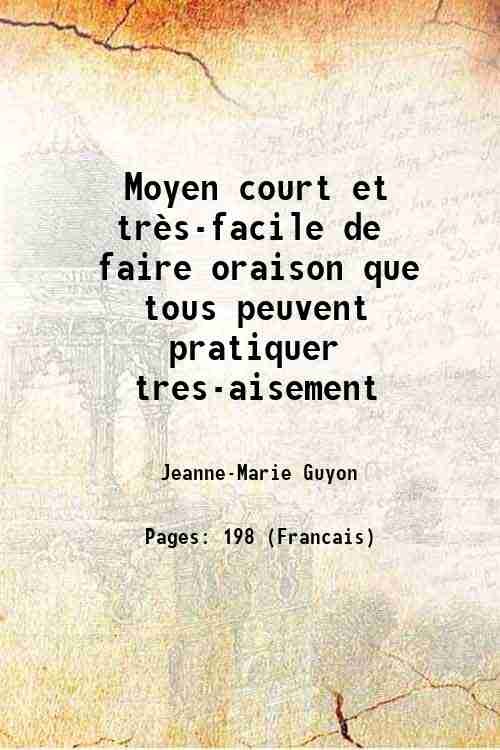 Moyen court et trËs-facile de faire oraison que tous peuvent pratiquer tres-aisement 1686