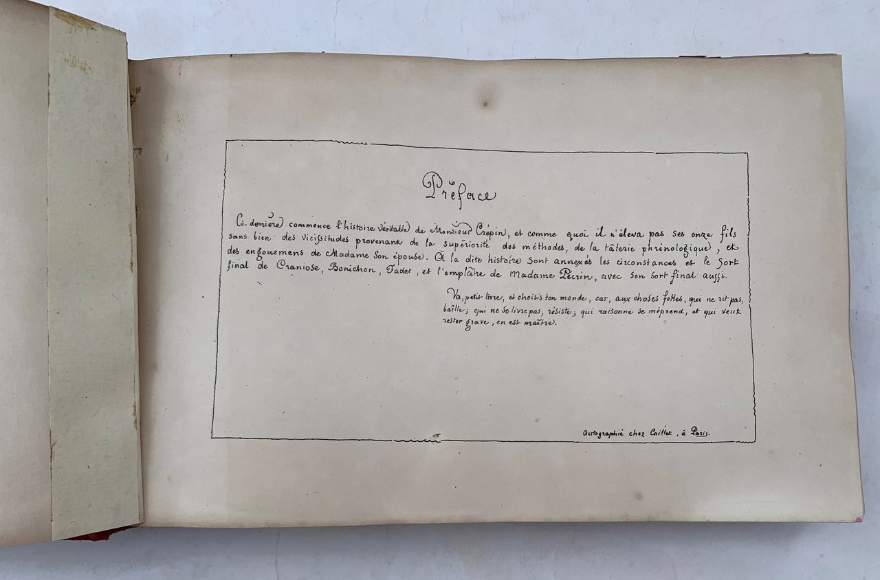 s.d.: 1923? (ed. originale: 1837). Testo in francese. XVI grande oblungo/ 88 fogli (176 pp.)/ rilegatura coeva in mezza pelle cinabro con titoli e fregi oro al dorso. Piatti rifiniti in carta marmorizzata nero/toni del rosso. Illustrazioni litografiche in nero. Stato buono (leggera consunzione della copertina ai margini - fogli di guardia e pagine bruniti).