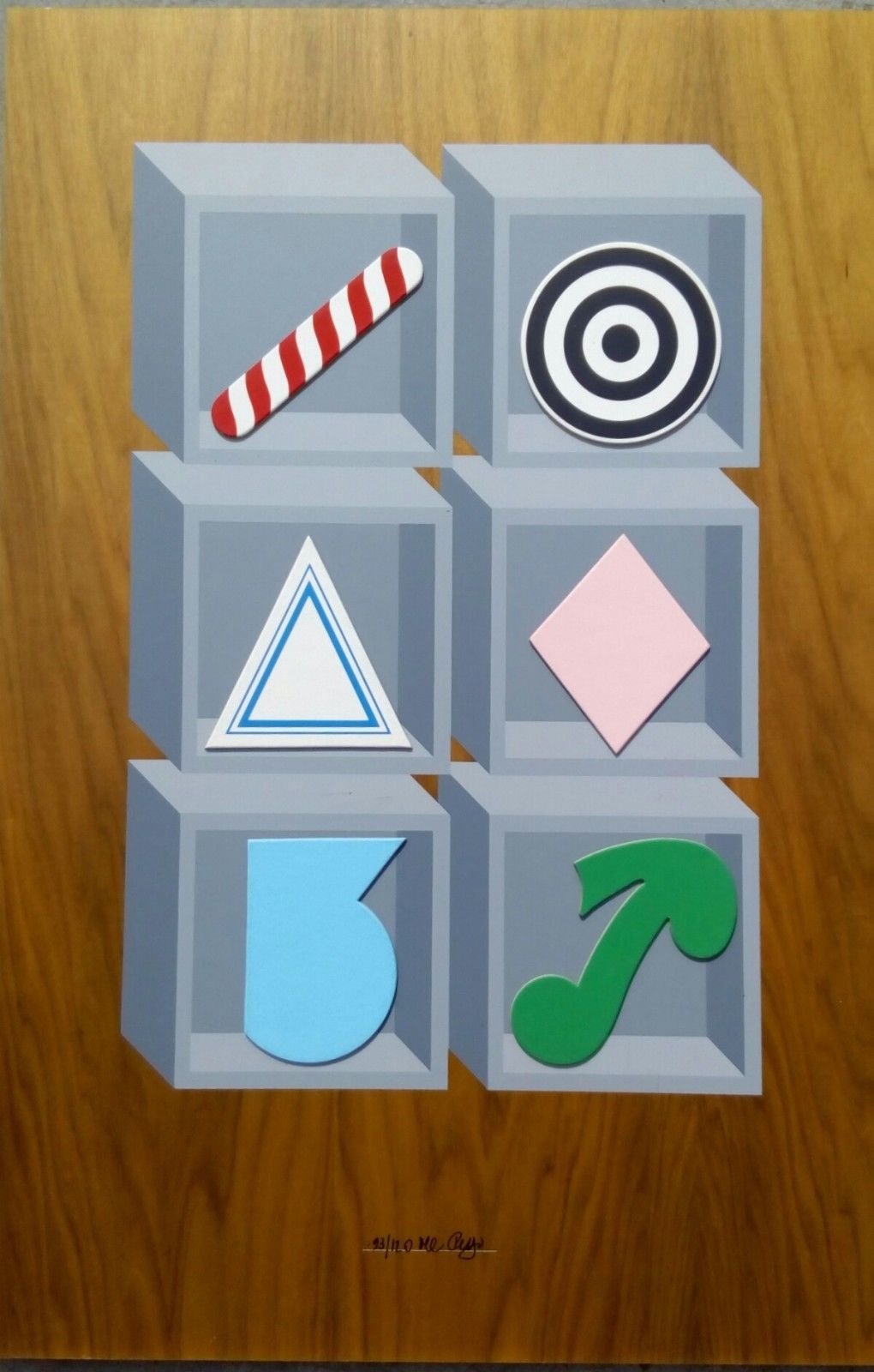 serigrafata su legno con applicazione dei simboli in cartoncino rigido