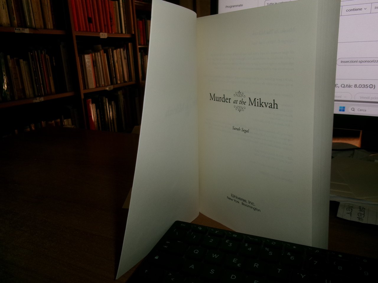 Sarah Segal. New York/Bloomington, 2009. MURDER at the MIKVAH. In-8°, br. ill. a col. viii, 459 pp. Come nuovo con testo in inglese. Uff. stanzetta a sinistra I - 2