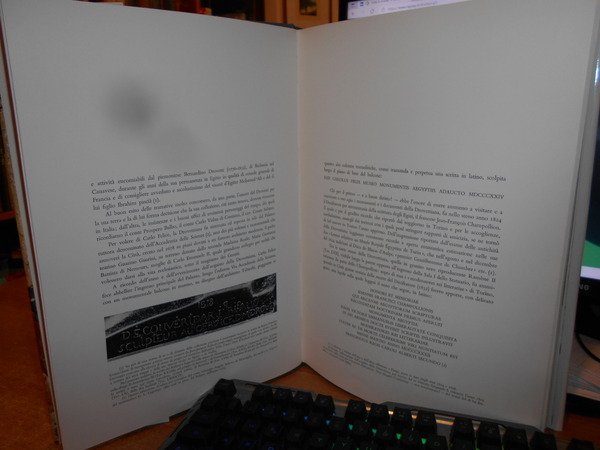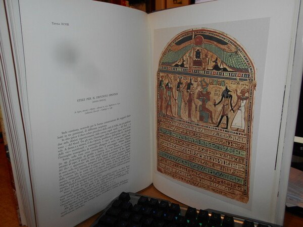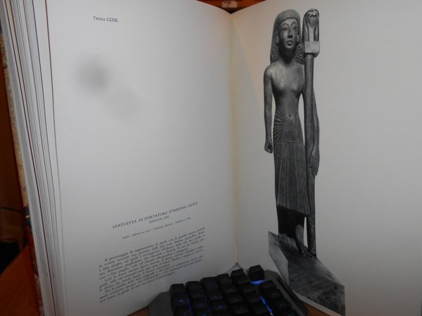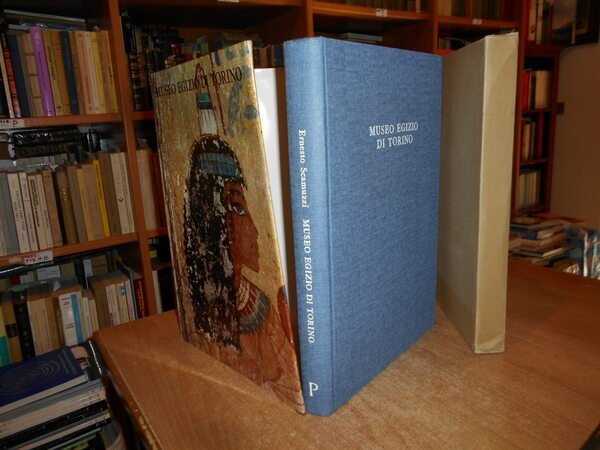 ERNESTO SCAMUZZI. Torino, Edizioni d' Arte Fratelli Pozzo, 1964. MUSEO EGIZIO DI TORINO. In-folio, tela edit. azzurra con titoli sul piano e al dorso, sovracopertina ill. a col. con risvolti. CXIV tavole a colori e in bianco e nero la maggior parte applicate con testo descrittivo a fronte. Il libro è come nuovo protetto dall' astuccio edit. con lievi segni del tempo. Neg. mob. nero in basso