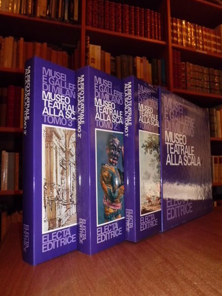 MUSEO Teatrale alla Scala. Musei e Gallerie di Milano. AA. VV. Milano, Electa Editrice, 1976. 3 volumi in - 8° quadrato, tela con le sovracopertine conservati nell' astuccio edit. in cartone rigido. Tomo I: Storia del Museo - Sezione Archeologica - Quadri e sculture - Ritratti miniati. Tomo II: Ceramiche - Pastori e popolani del presepe napoletano - Marionette e burattini - Strumenti musicali - Medaglie - La raccolta delle stampe e dei manifesti - Le cinquecentine della Biblioteca Livia Simoni. Tomo III: Scenografia. Complessive 886 pp. con innumerevoli illustrazioni fotografiche la maggior parte in bianco e nero n.t. Esemplare in stato di nuovo.