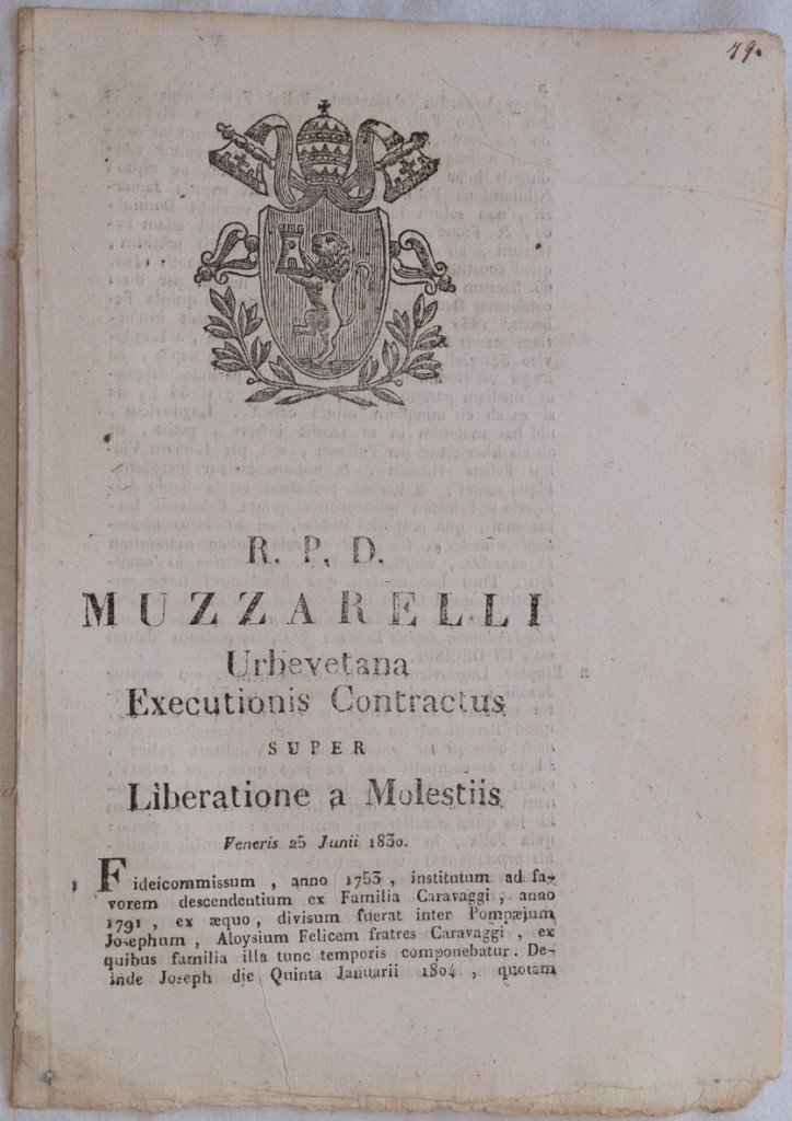 MUZZARELLI URBEVETANA EXECUTIONIS CONTRACTUS SUPER LIBERATIONE A MOLESTIIS VENERIS 25 JUNII 1830